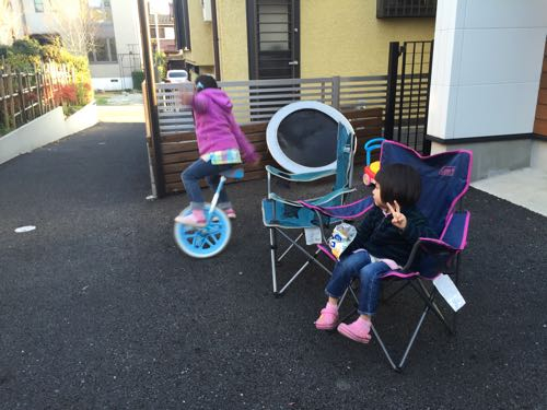 長女が一輪車の練習をしていました。
