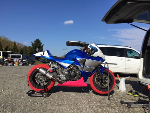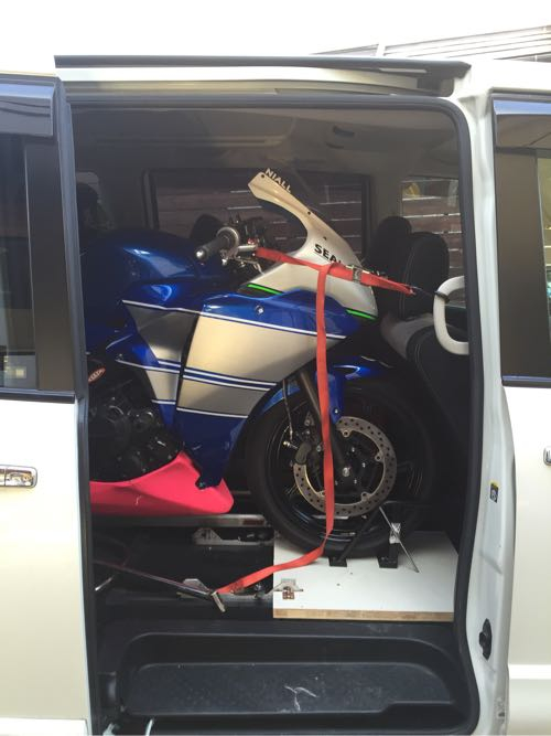 こんな感じでバイクを載せて桶川スポーツランドへ行ってきました。