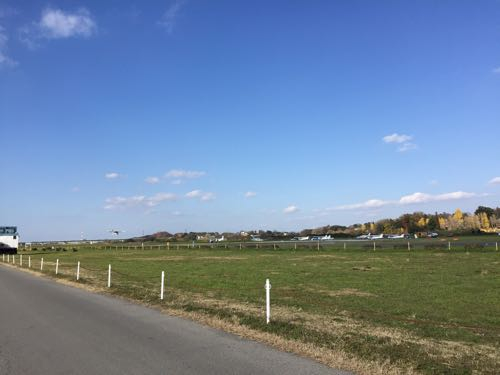 帰り道に滑走路の脇を通ったらちょうど飛行機が着陸してきました。
