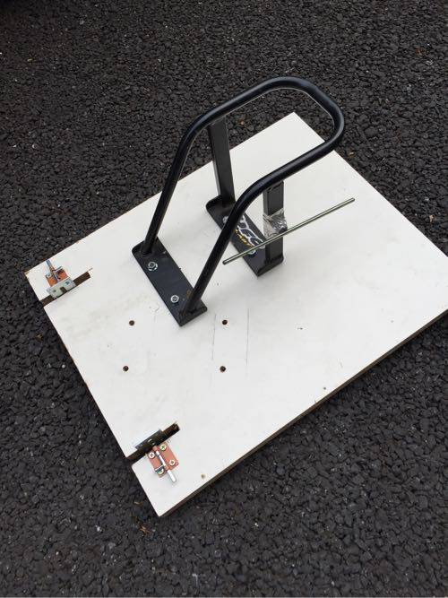 そして、こちらは自作のタイヤストッパー。